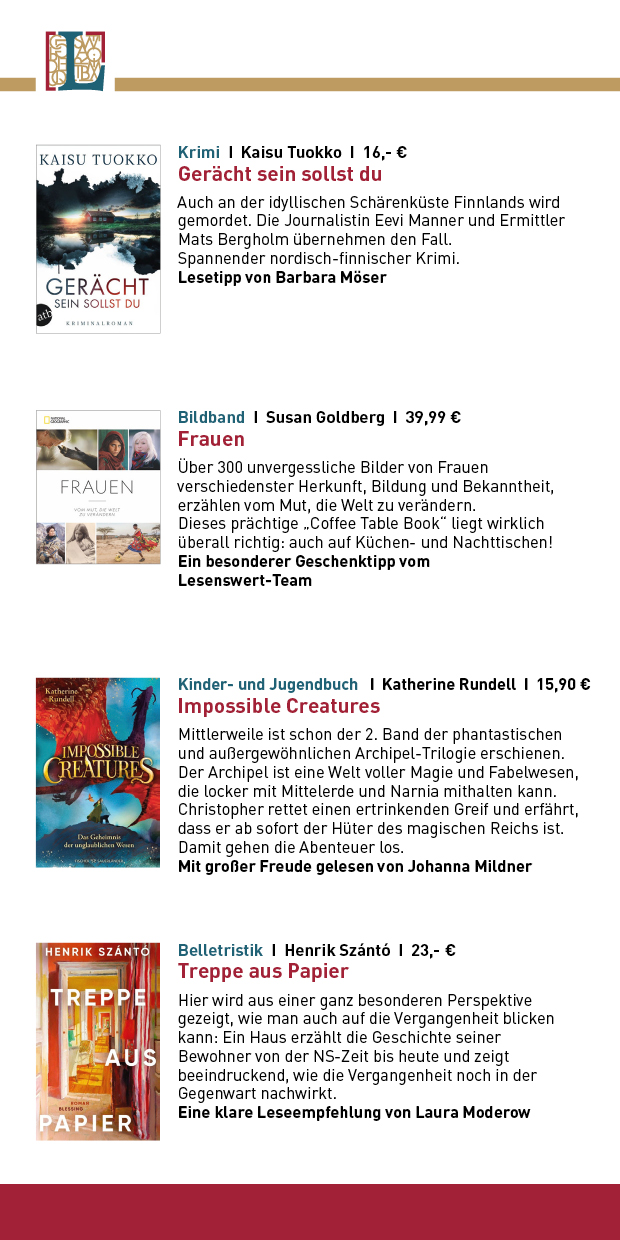 Neue BuchempfehlungenLieblingsbücher – zum wünschen und verschenken!